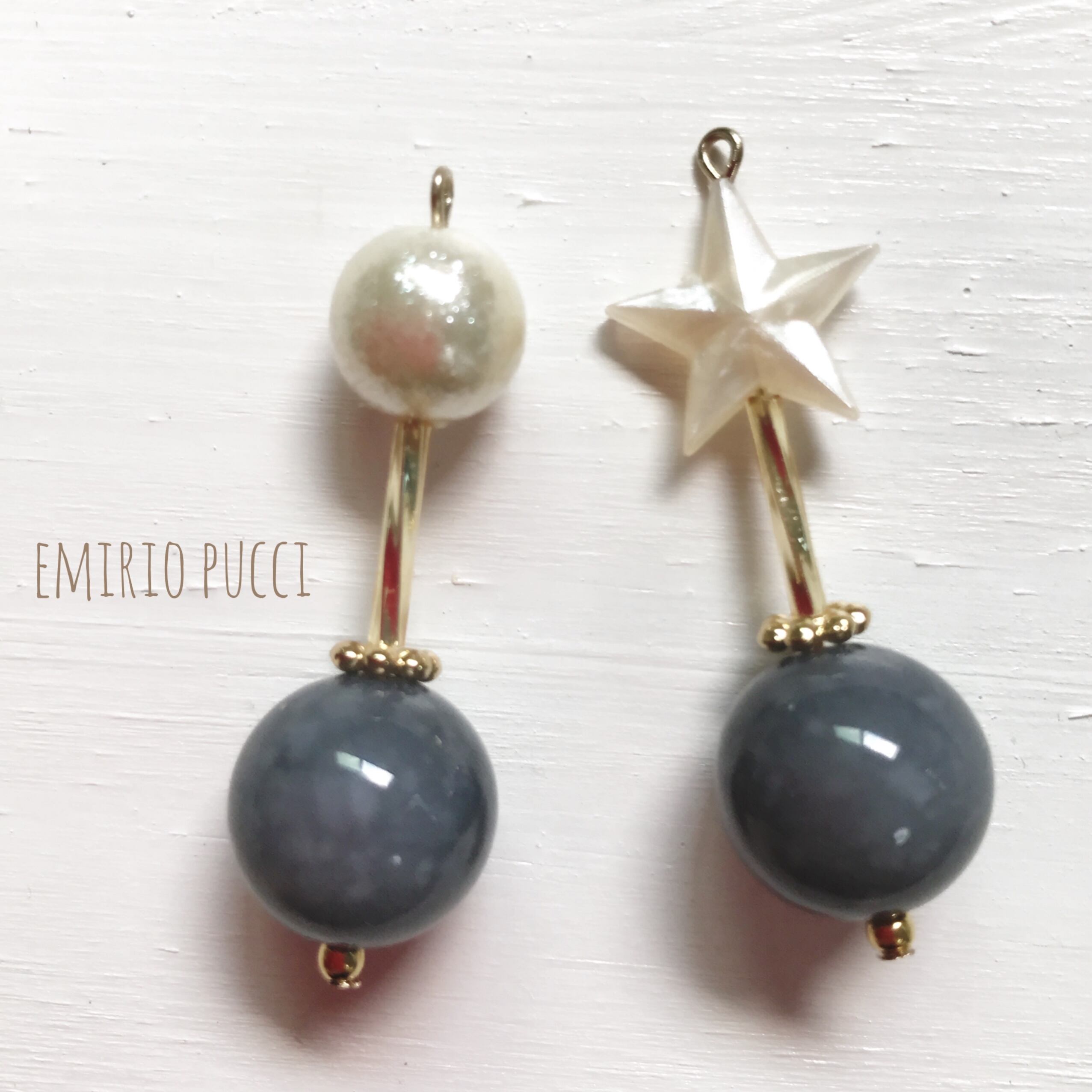 グレー* 星とパールのナチュラル ピアス イヤリング