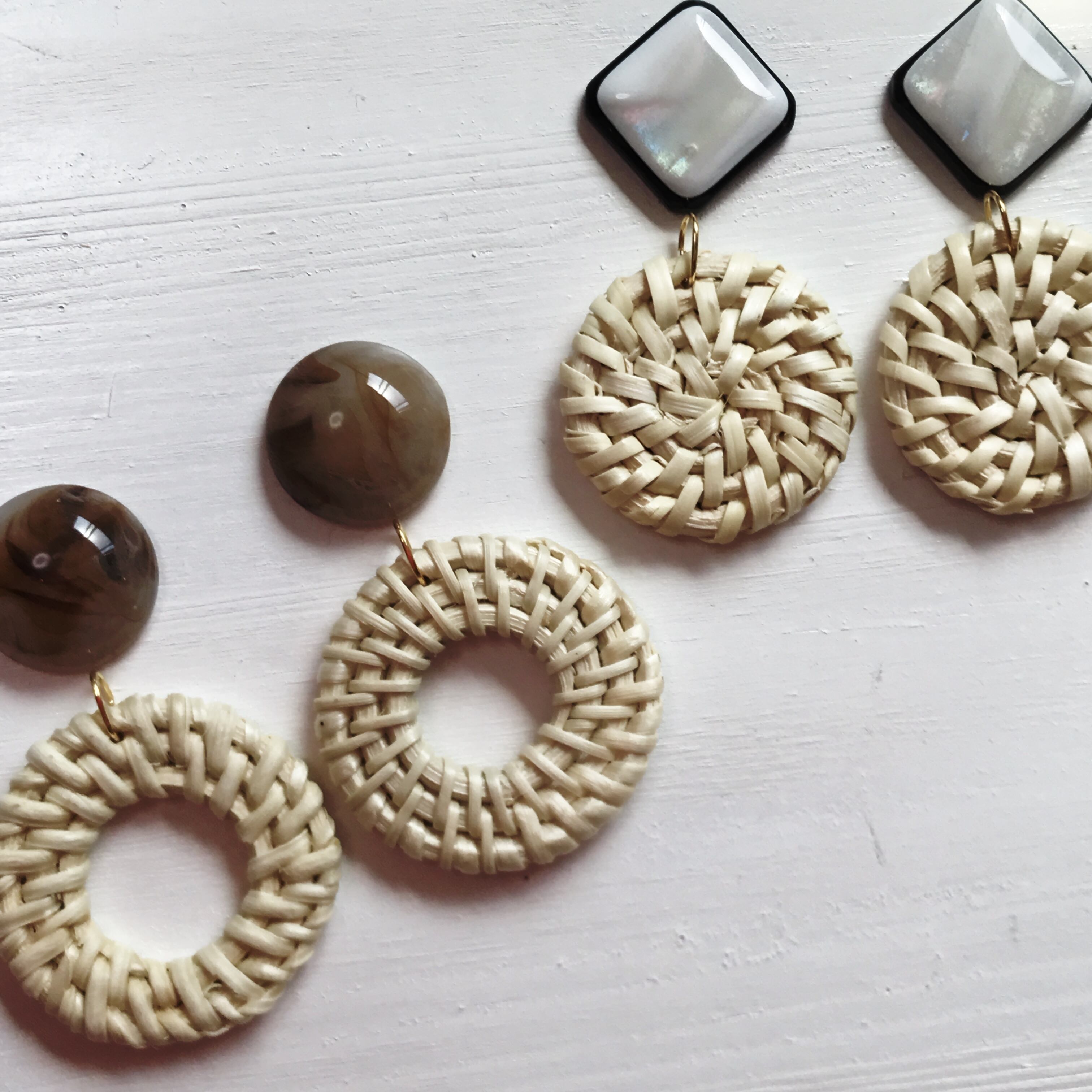 ラタン × ミルクティーマーブル ナチュラル ピアス イヤリング