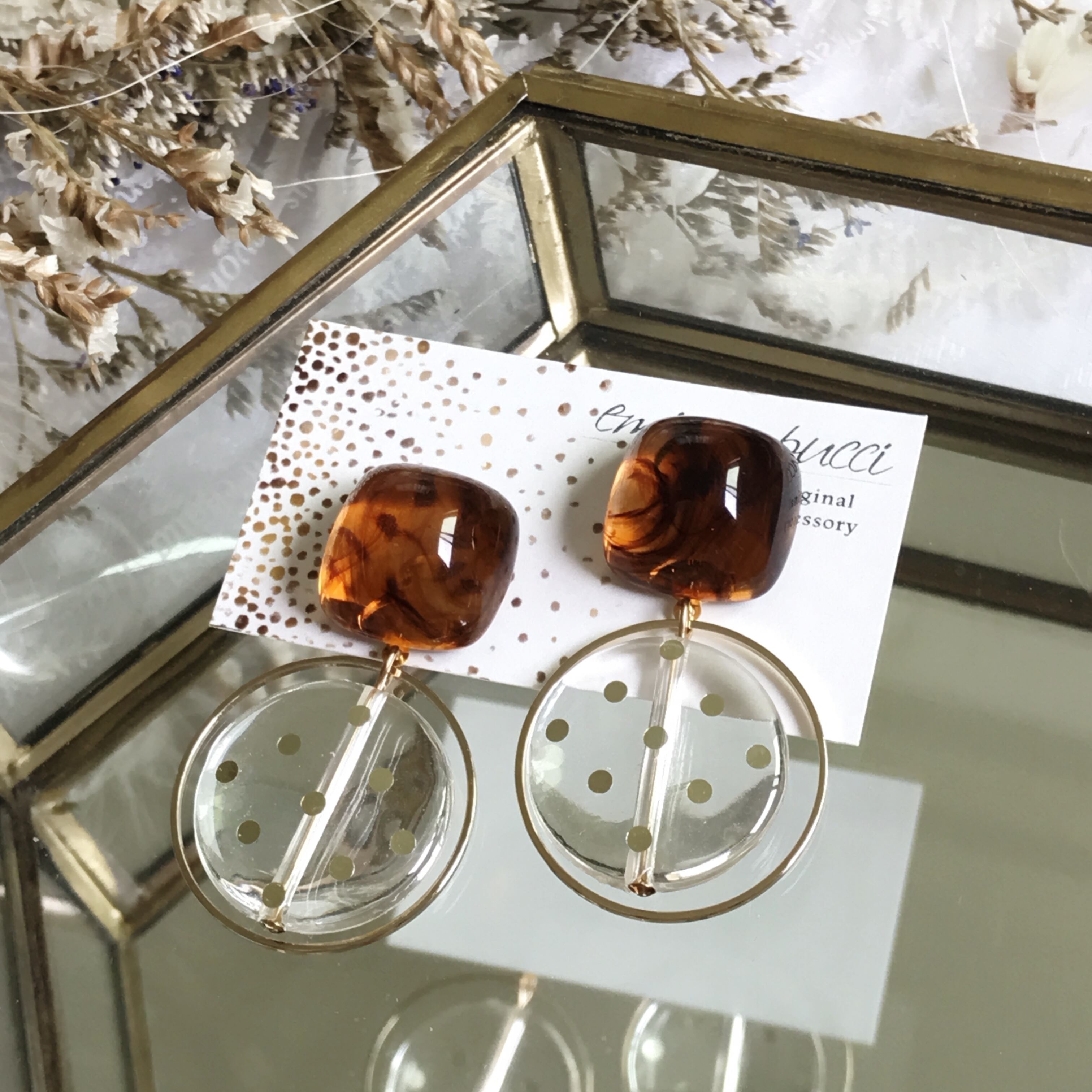 べっ甲×水玉 フープ ピアス / イヤリング ドット柄