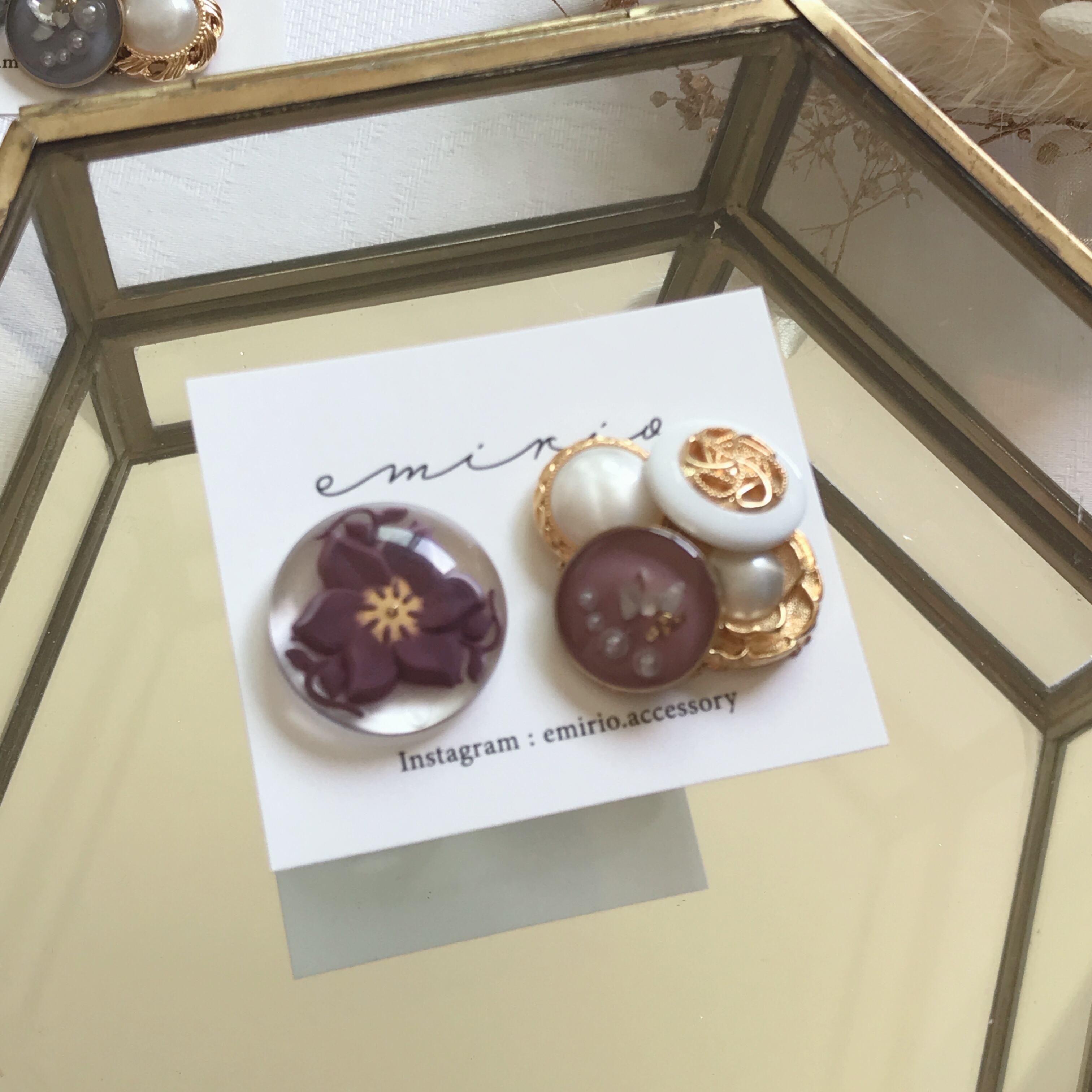 お花のボタンに落ち着いた色味のレジンを合わせ